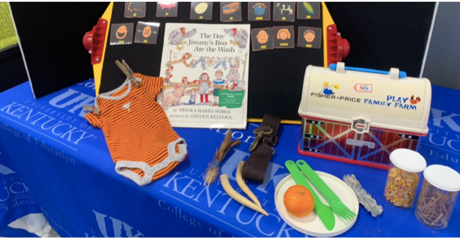 As part of the graduate coursework for Visual Impairments and Multiple Disabilities in the Teacher Preparation Program in Visual Impairments at the University of Kentucky, students were asked to complete four projects: a Story Box with at least 10 objects that correspond to the story, picture communication symbols and tactile communication symbols designed to go along with the story, and a talking book to go along with the story or represent concepts from the story.