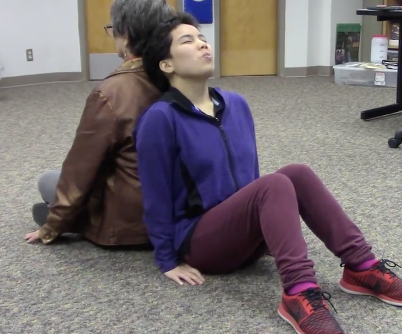 Pretend stories can be developed in groups or with one student and a teacher. Usually, the students work together with either a teacher or each other to generate imaginative stories inspired by poses or “asanas” they have practiced in regular yoga routines. In children’s yoga, and in some adult yoga approaches, the poses are often taught as animals (e.g., “cat-cow”, “cobra”, “frog”, “butterfly,” “bird”, “elephant.”), geographic or natural features (forest, trees, volcano, earthquake, sunflower). For many children with visual impairment, these story elements are quite abstract—they may have heard of a lion or a mountain, but never seen or experienced them. As they use their bodies to represent these characters, settings and natural features, the student who is blind comes one step closer to an understanding of concepts that other children obtain incidentally through their observations of the world around them. Older children and adolescents who are blind, especially those with additional disabilities such as autism, may have missed this important early childhood activities which involve “pretending to be” something or somebody else. Their use of their bodies representationally often provides an excellent starting place for imaginative story development.