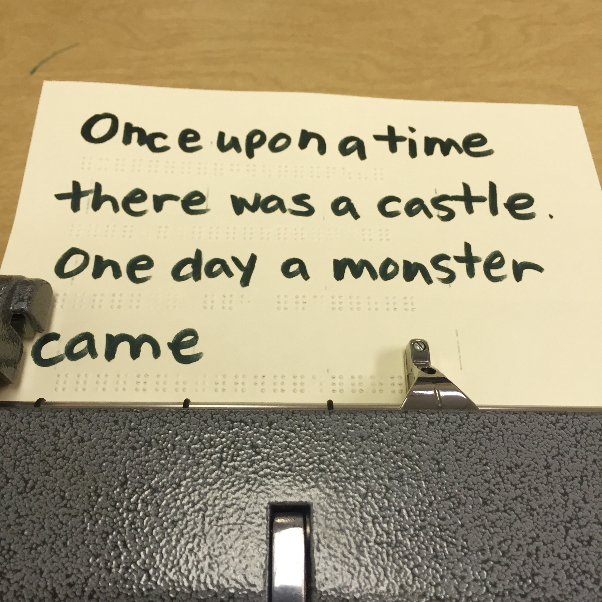 Student participates in written story telling and will experience that a braille writer makes braille and braille is a way to write your words on paper