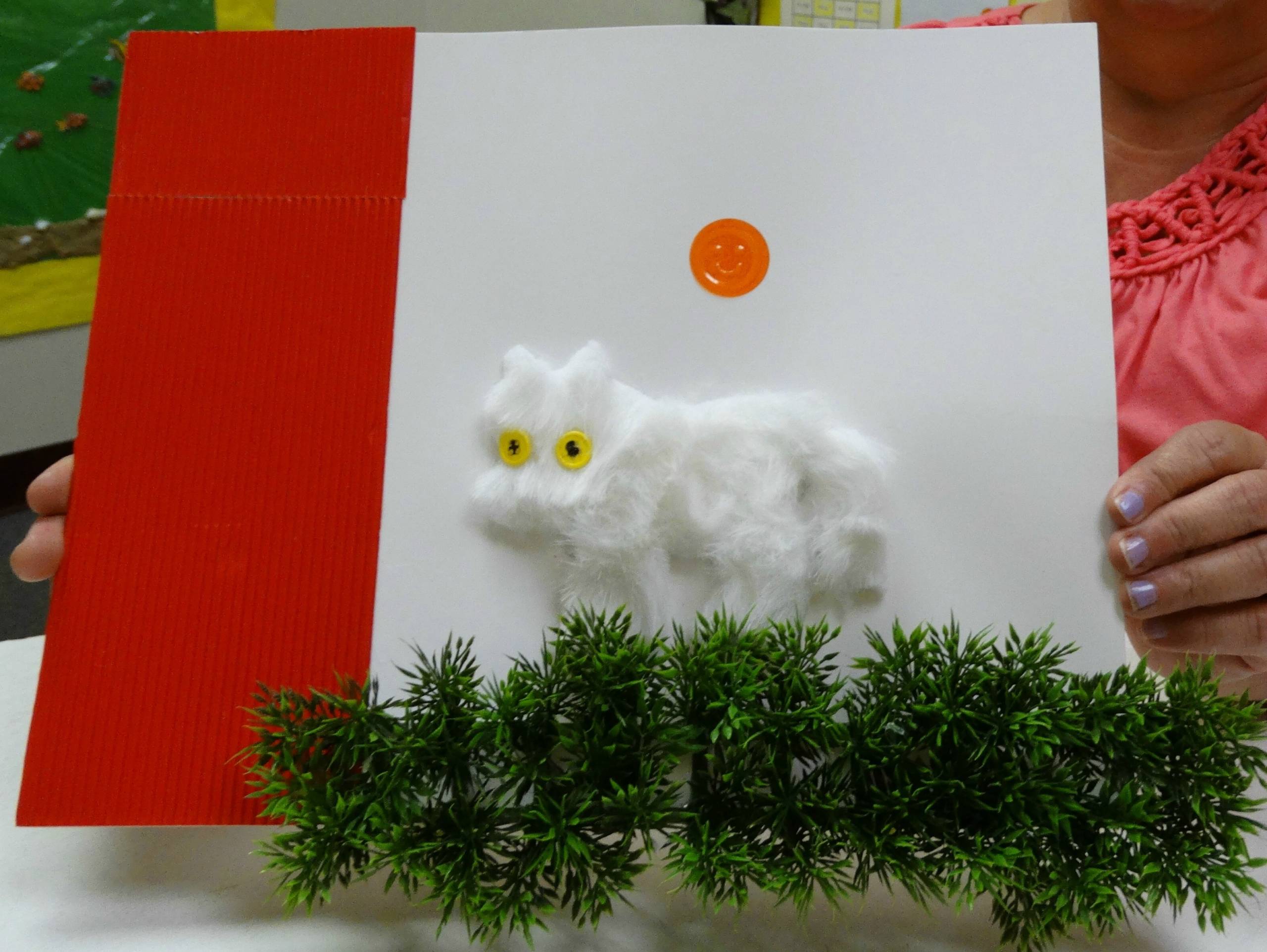 - He arranged them on the poster board and then secured them to the board with glue. (The horse was cut out for him.)