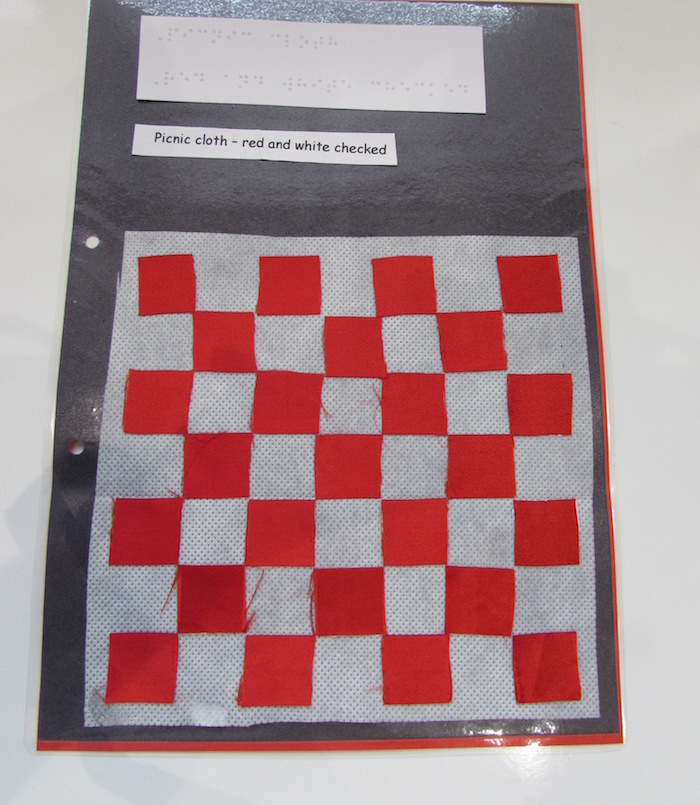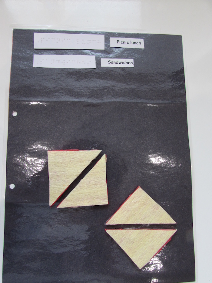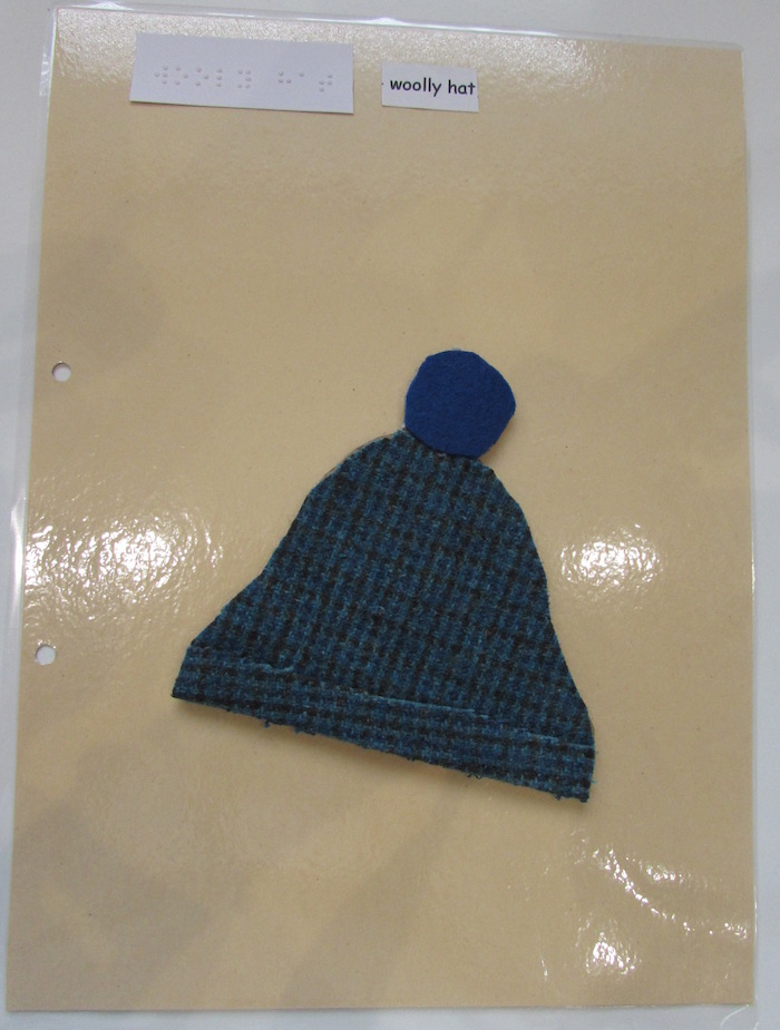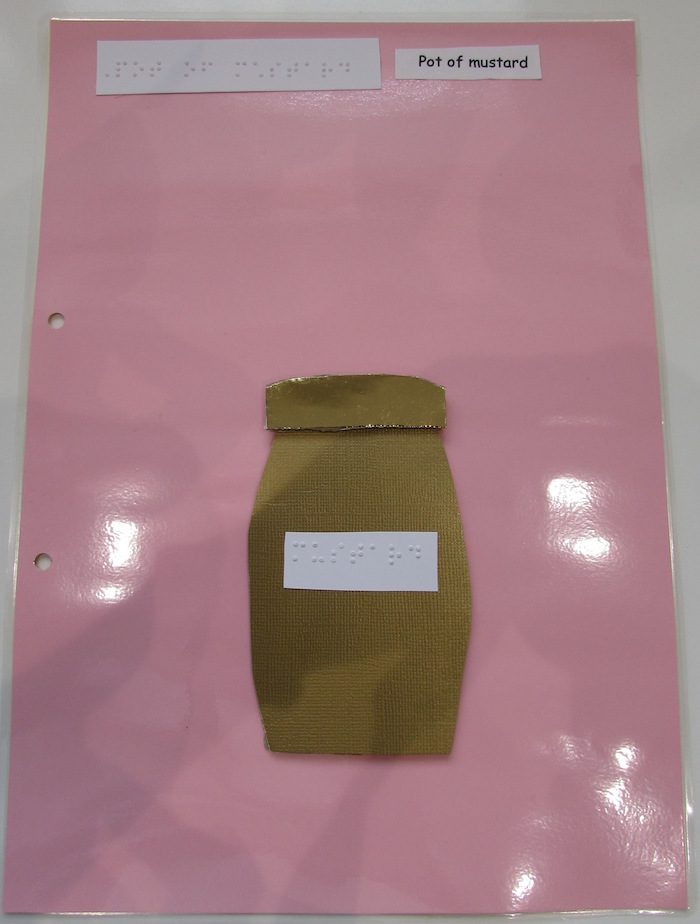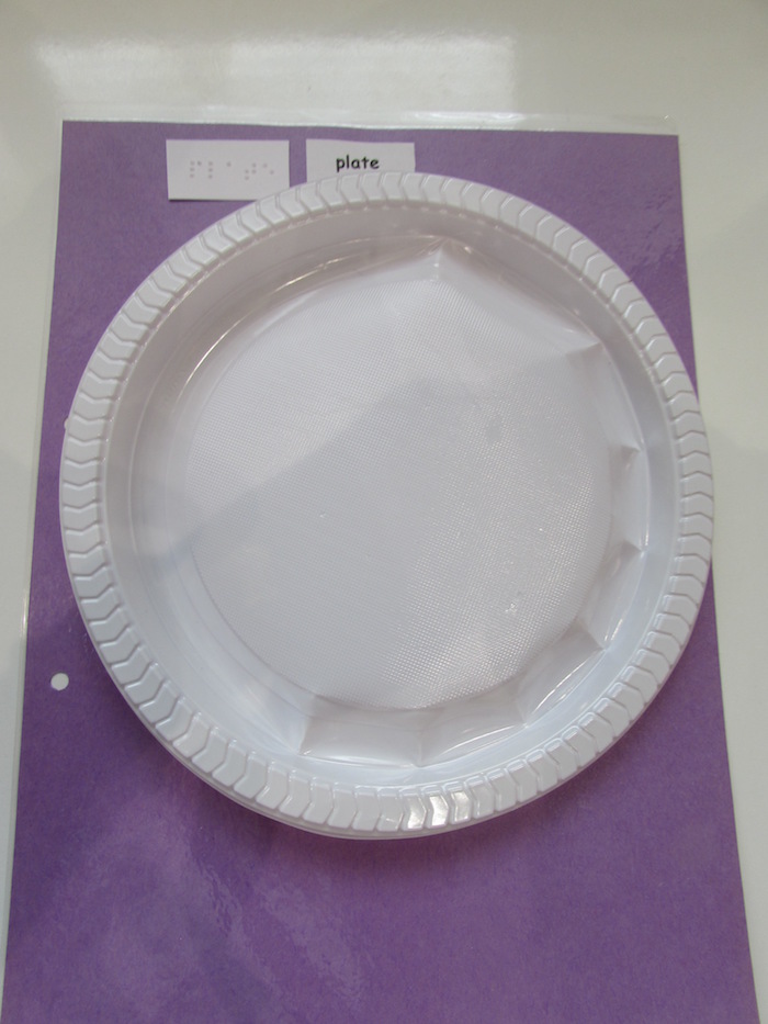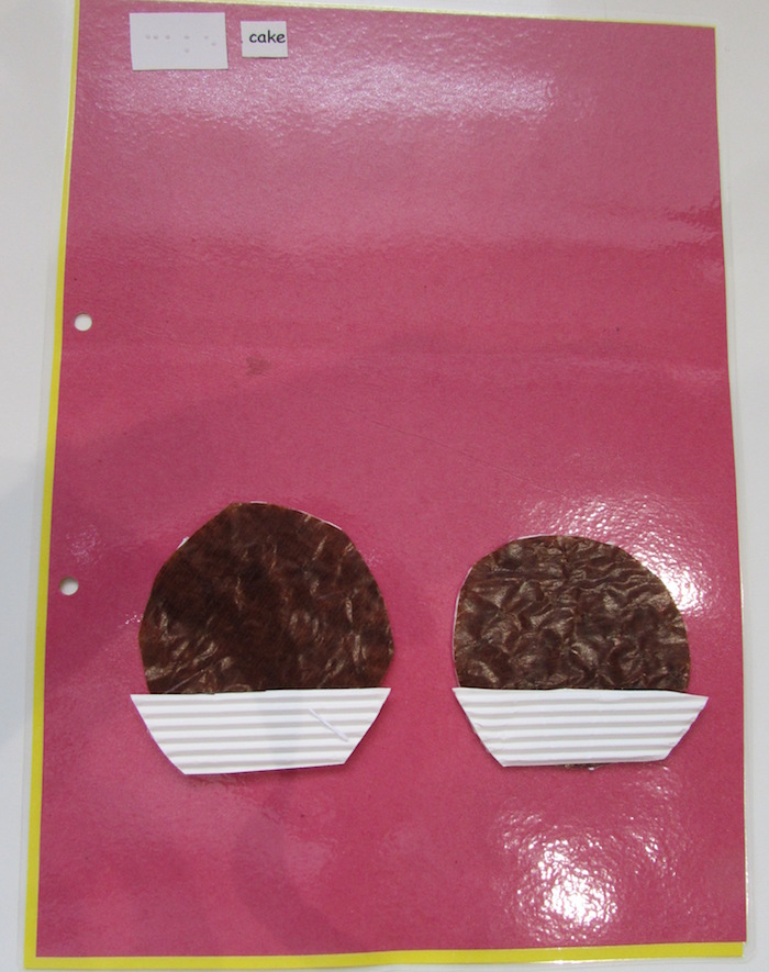 Here are some sample pages we created using braille, large print, real objects and tactile symbols for some of the keywords. Be creative! Be sure to select materials that have meaning for the individual child.