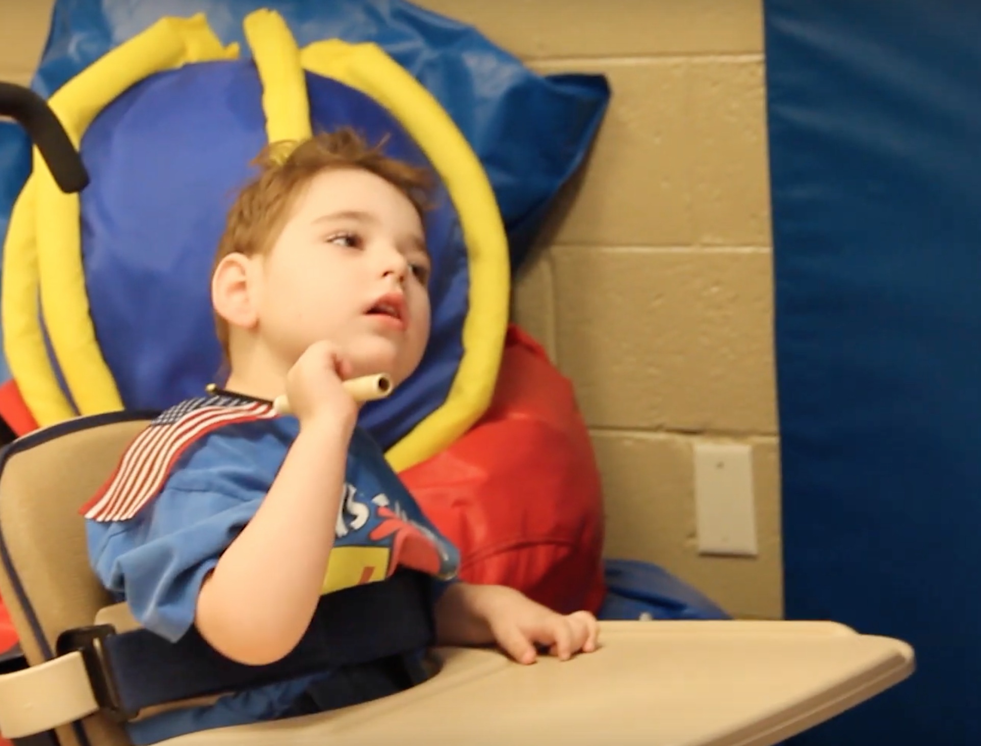 American Printing House for the Blind (APH) shares a video example of a sensory learning routine with five-year-old Max, who performs at the sensorimotor stage of cognitive development. In this video, he performs his Sensory Learning Kit (SLK) Flag Routine. His teacher, Ms. Mary, uses visual modeling and tactual modeling to teach Max three embedded goals: to reach, to observe, and to imitate. Although it is difficult for Max to control his movement, particularly his head, he begins to achieve his goals while attaining new skills. SLK strategies ensure that sensorimotor level routines create new learning opportunities.