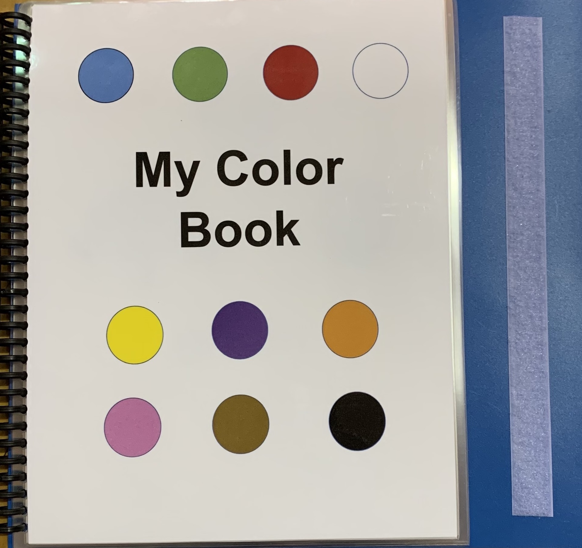 - On the right side of the book is a Velcro strip. Put 2-4 colored circles there (depending on student’s ability) and have them match the colored circle to the page you are working on.