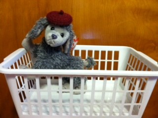 - Take the stuffed animal out of the basket and ask the student to put the dog back IN the basket. Repeat this action several times. This also introduces OUT.
