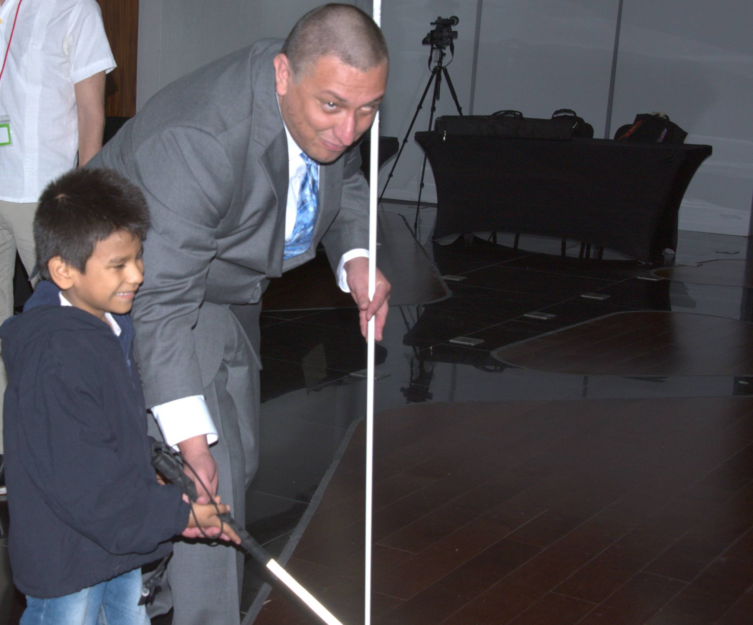 If I am working with a student on learning how to shoreline with the cane, my cards may include words like “cane,” “shoreline,” “follow,” “door,” “grass,” and “sidewalk.” You can give these to the student to review before and after the lesson. You may also use them along with the interpreter or intervener so you are able to communicate more directly with the student. You may begin to learn some key words in the student’s language as you prepare and review the cards.