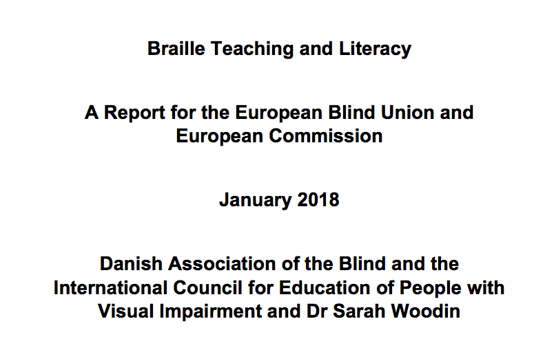 “This report discusses findings from a two year project that ran between 2016 and 2017 and investigated the situation in Braille teaching and literacy in nine European countries. The project was led by the Danish Association of the Blind for the European Blind Union and involved Braille users working with the International Council for Education of People with Visual Impairment (ICEVI), service providers and others with an interest in supporting the use of Braille.