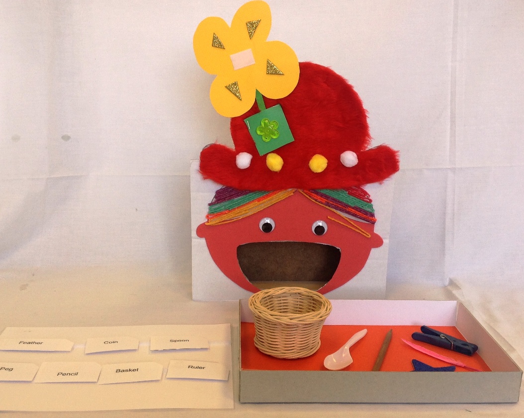 Ask the child to find the object in the box and to place alongside the correct word on their tray