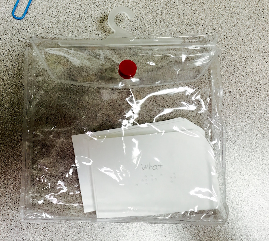 The smaller ones I use for flashcards, braille eraser/stylus storage, etc. The larger ones for homework bags, materials for a project, games, etc. I typically do a call out to colleagues at school to see if they have any they are willing to donate to the ’cause’. The nice thing is they have the hook from hanging on the peg at the store or a nice handle on the larger bags. I like to hang the bags up on a metal hook that the teachers typically have in the front of the room near the calendar area or in the student’s cubby.