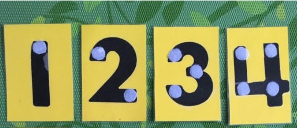 - I laminated the black letters onto the yellow cards and then used soft Velcro for the dots on the numbers.