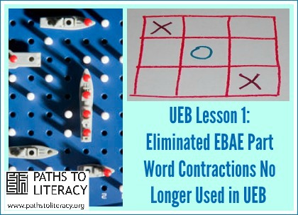 The student will be able to identify the five part-word EBAE (English Braille American Edition) contractions below that are not used in UEB (Unified English Braille).